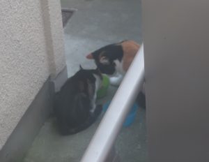 黒ママが子猫を連れてきて、その後に住み着く2020年頃までは、通い猫仲間の他の猫たちと一緒に食事をしたり寝ていたりと、穏やかに仲良く過ごしていました。でも、黒ママが住み着いた外猫となってからは、徐々に他の猫は受け入れられなくなってきました。