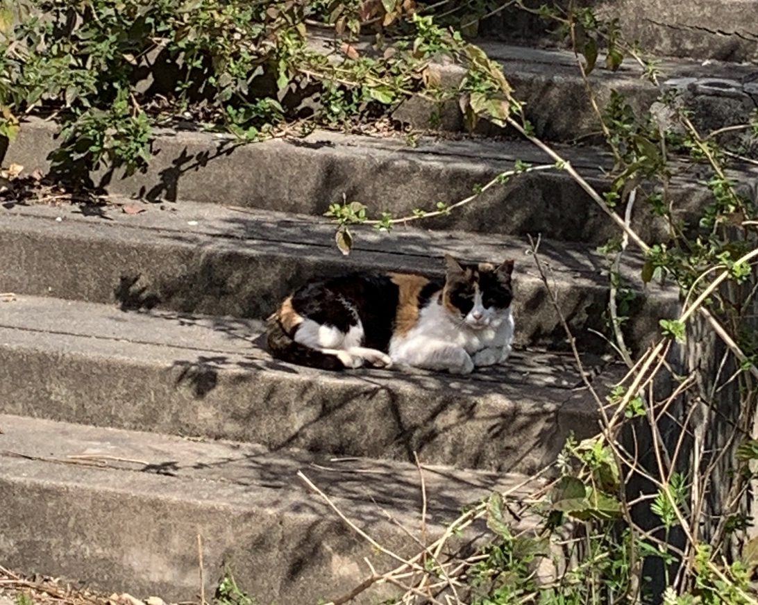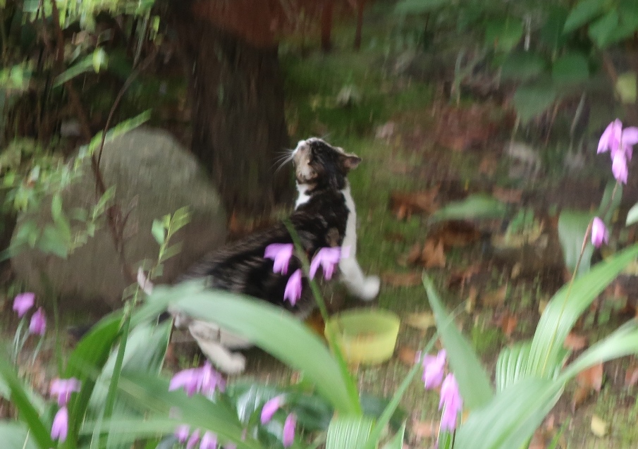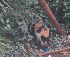 予想通り、ビビリのチビにとってはとってもショックだったようで、しばらくは庭に来ず、緑道まで行って、かつてと同じ場所で餌やりを続けました。