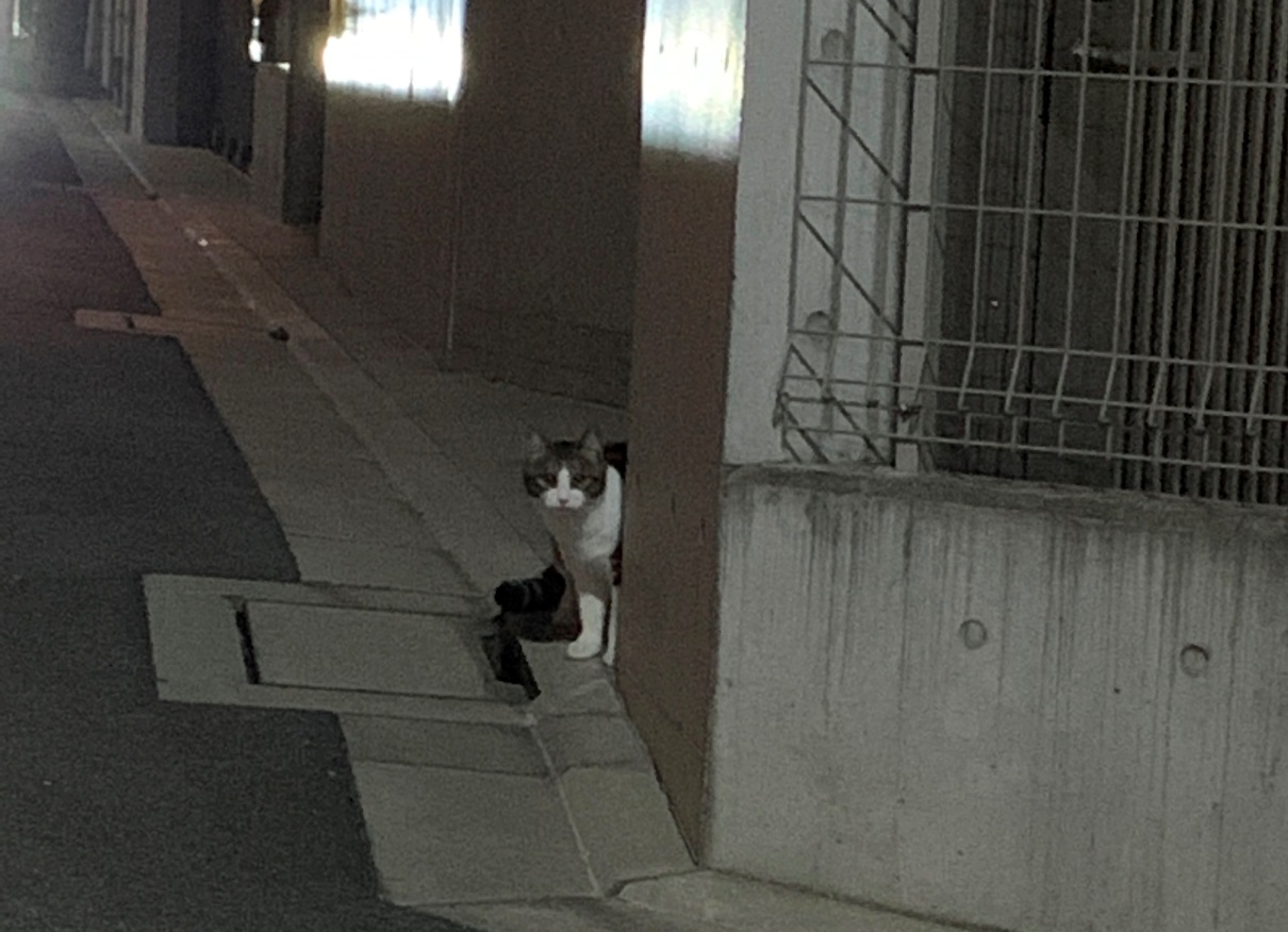 その後、7月9日の夜を最後にして、まったく現れなくなりました。毎日、ネコ観察カメラの映像をチラチラ観ながら待っていたのですが、まったく現れません。涼しい本宅で過ごしているのだろうと推測していましたが、1ヵ月を超えると、これは交通事故にでも会ったのではと心配しました。近所に新しいショッピングモールができて交通量が増えたからと思いながら、夜に何度か町内を歩いて探したりもしました。