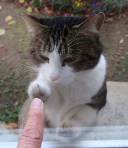 それが101日間続きました。もうチビには会えないのかなとあきらめていましたが、猛暑の夏が終わって、かなり涼しくなった11月4日の朝、何事もなかったように庭で待っていました。今回も、空腹ではあったけれど、飢えている様子ではありません。
