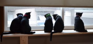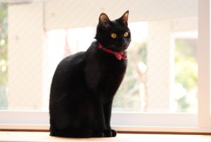 2019年3月、アイの里親候補さんが面会にいらっしゃった頃、ガレージの自転車カバー屋根の上に小柄な黒猫が昼寝していました。まだ生後6カ月くらいの野良猫です。