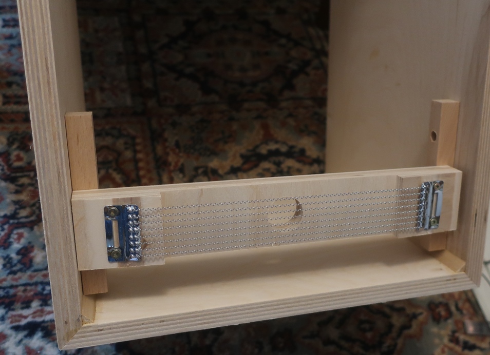 そこで、これも思いつきですが、前板から空気が少しでも抜けるよりも、しっかりとねじ止めしたほうがいいのではないか、と考えて、2本ずつ左右の上部をねじ止めしました。ねじとねじの間隔が均一ではなくなったのですが、あまり目立たないでしょう。