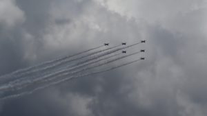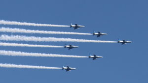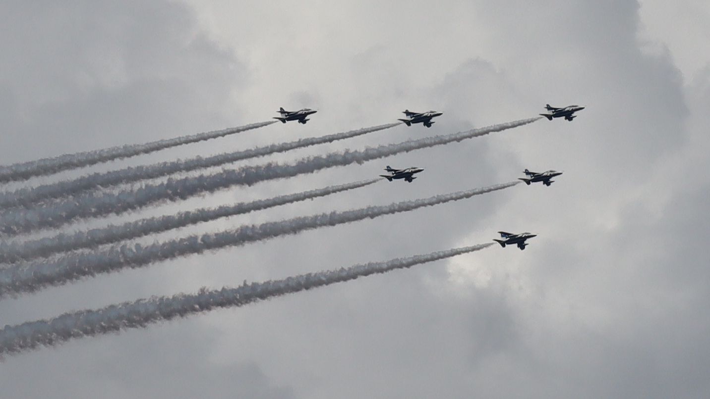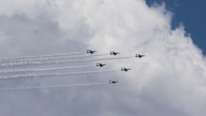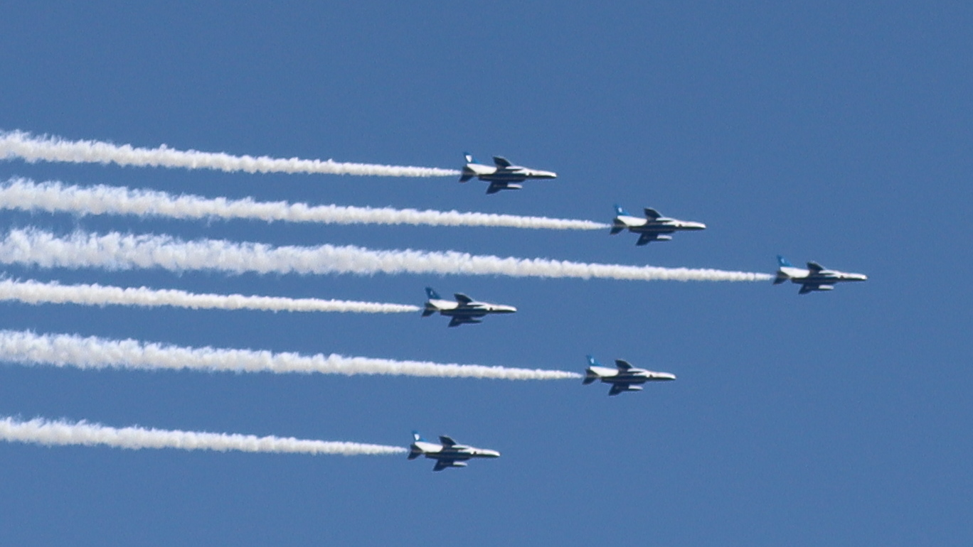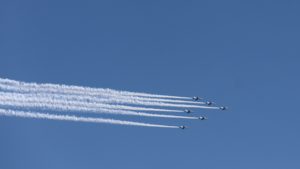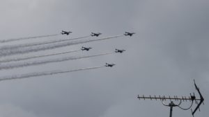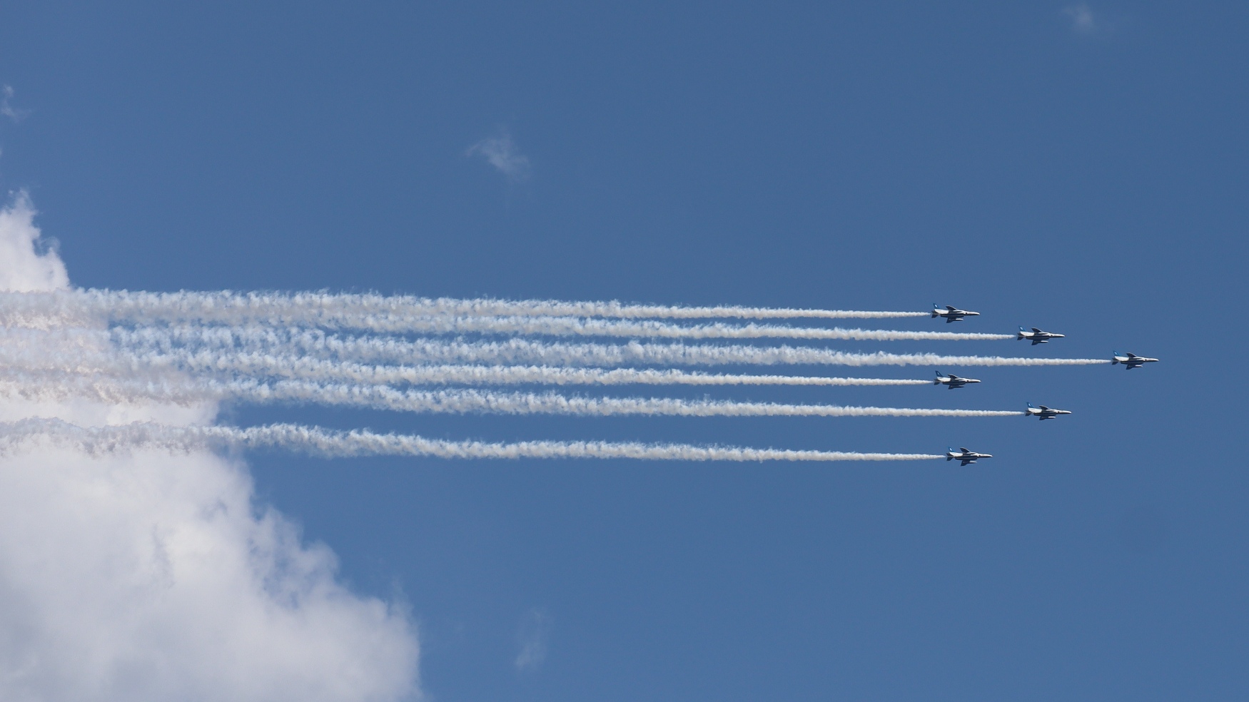 万博会場上空での展示飛行は涼しい部屋でYouTubeのライブ映像を観ていました。ヘリコプターによる上空からの映像もあって、臨場感はありませんが、展示飛行の全体を十分に楽しめました。
