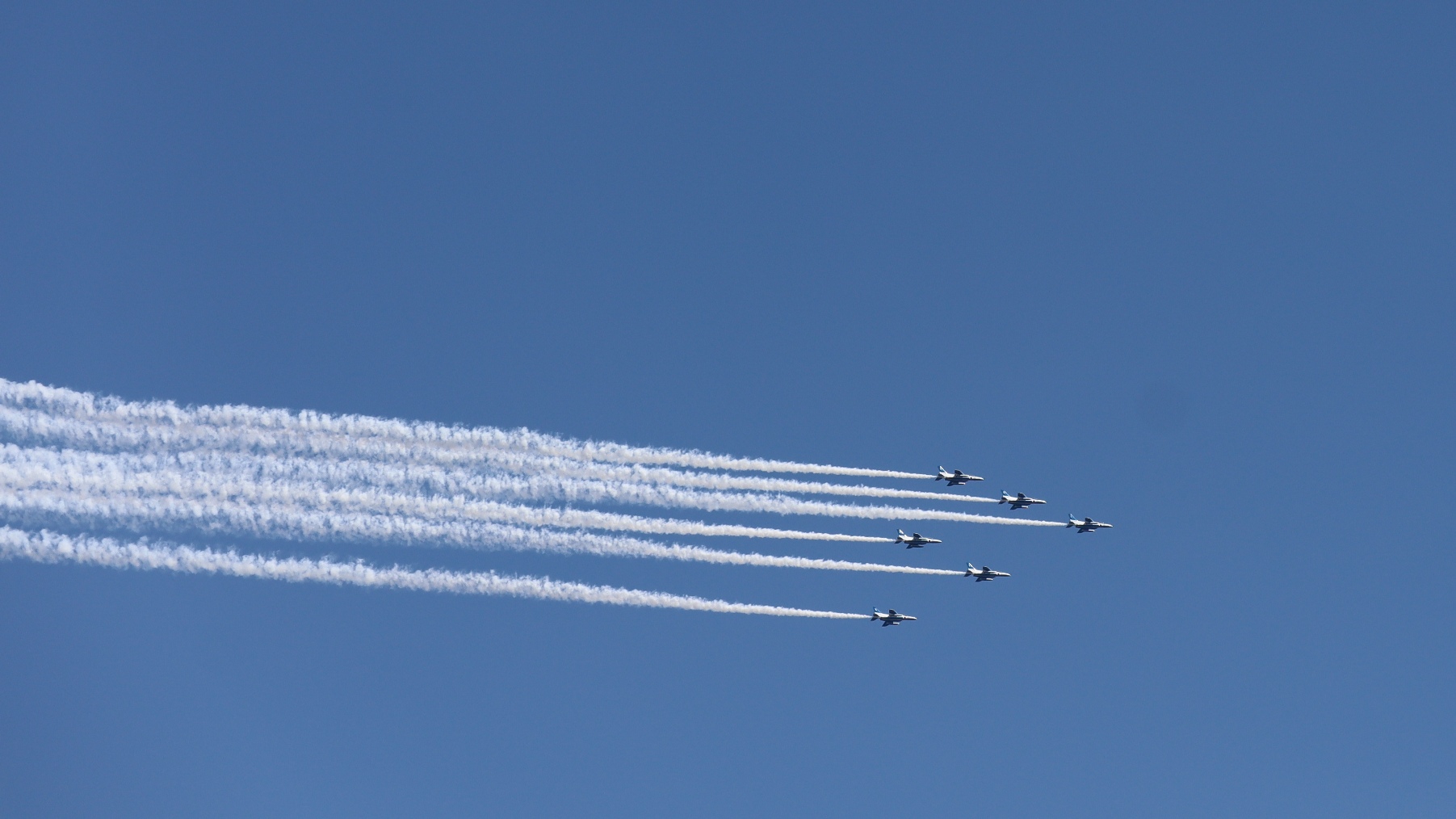 関西国際空港を離陸してから、展示飛行を終えて着陸するまでちょうど40分でした。その間、関空と伊丹空港(大阪国際空港)を離発着する予定の飛行機が地上か上空で待機している状況を伝えているライブ映像も同時に眺めていると、ブルーインパルスが大阪上空で展示飛行する事業の大変さがよくわかりました。次の機会はちょっと無さそうです。
