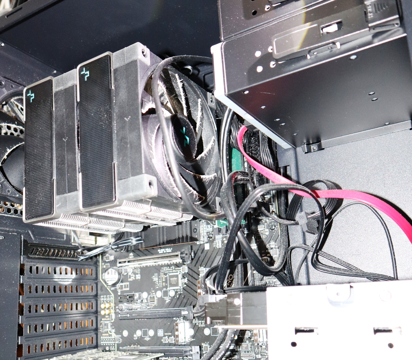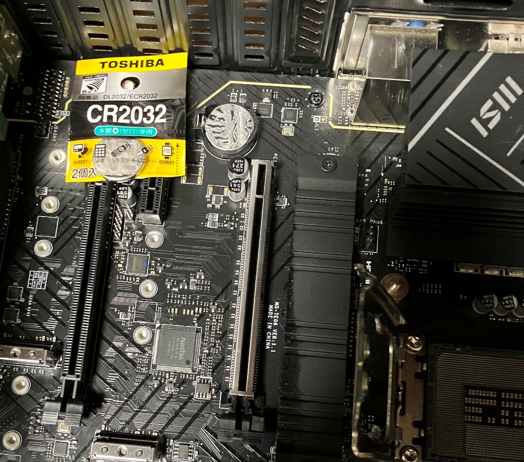 CPUを取り外してから、ホコリまみれになっていたファンや基板を掃除して、ついでにボタン電池CR2032を交換しておきました。次期コンピュータを組み立てる頃まで持つでしょう。