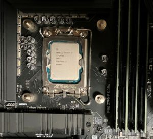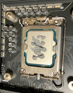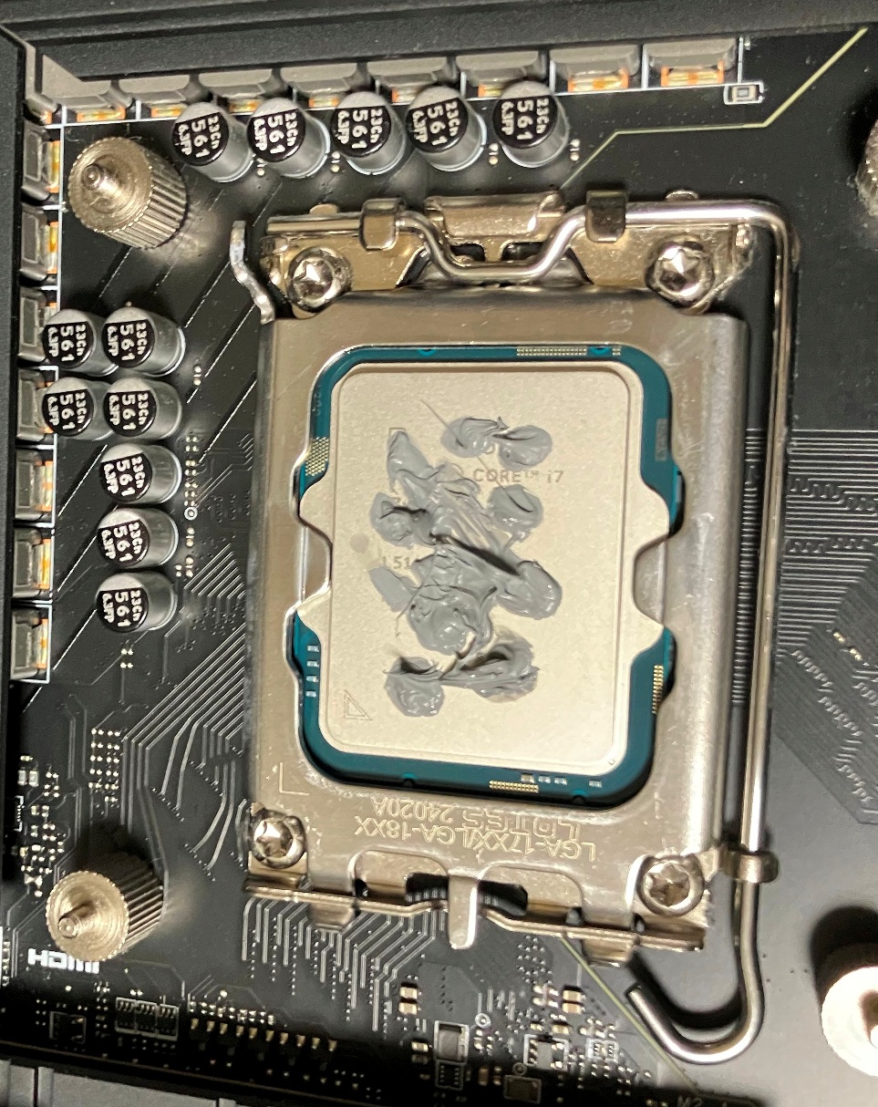 クーリング・ファンを外すと、グリスがベッタリのCPU(intel core i7 13700)が見えてきます。