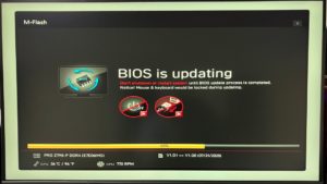 ケーブルをつないで、電源ボタンを押しました。このCPU交換についてはネット検索していて、何のトラブルも無いという記事を読んでいましたが、しばらくシステムディスクの稼働を示すランプが点かず、それなりに心配しました。1分以上はそのままの状態が続いてから、再起動したような動きがありました。マザーボードが何らかのCPU更新作業をしていたようです。LANはつないでいましたので、交信があったのかもしれません。ともかく、無事にスタート画面が出てきて、ホッとしました。