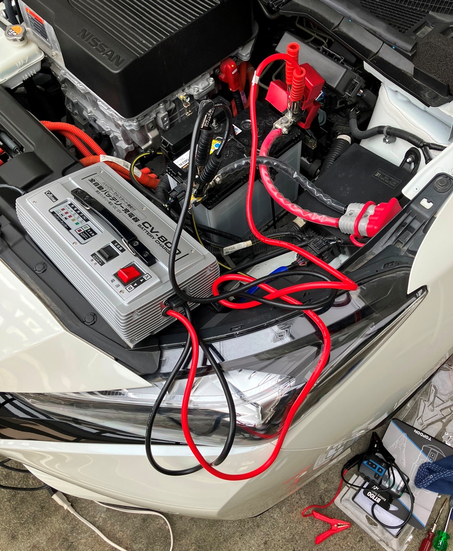 12Vバッテリーをしっかり充電するには、内燃エンジン車(ハイブリッド車を含む)ならエンジン直結の発電機が充電を担当しているので、エンジンが回っている時間が長ければ問題はなく、短ければ、別途、充電器を使って充電することになります。