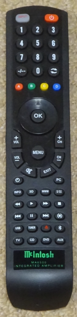 まあ、このリモコンに執着しても仕方がないので、SONYの学習リモコンをMA6500専用にしておこうと、他のボタンを隠してみました。McIntoshのロゴ・シールも貼りました。