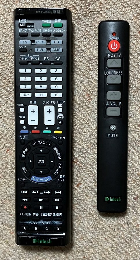 テレビとBDレコーダーのボタンはすべて登録していたので、McIntoshのリモコンのボタンもすべてを登録しておきたくなります。しかし、あらためてMcIntoshのリモコンを手に入れようとしても、何年も前に廃版になっており、中古販売で3万円くらいの値段が付いています。