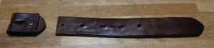 ベルトの残っていた部分を下側に後付けしました。バックル用の穴が見えるのはご愛敬ですが、このあたりはヨレヨレになっていたので、使っていませんでした。かなりの色づけなどで合わせてみました。