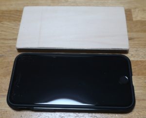 事前に9mm厚の板でモックアップを作っておきましたが、実物で合わせることができたので、出番はありませんでした。SE2の色は赤ですが、黒いSpigenのケースに入れているので、前から見ると真っ黒けで、上下がよくわかりません。