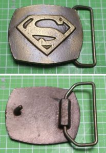 アメリカで買ったバックルは他にもあります。これはスーパーマンで、幅45mm以上のベルト用です。オートバイに乗っていた頃に使おうかなと思っていましたが、しまい込んだままでした。
