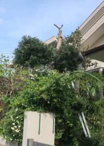 ブルーインパルスの展示飛行は観たかったのですが、暑さと混雑が苦手なので、万博会場(あるいは舞洲の隣の咲洲コスモスクエアあたり)に行く気は起きませんでした。そこで今回は、4月10日の予行飛行を見物した淀川の豊里大橋よりも近場、自宅の2階ベランダから近所通過を眺めることにしました。