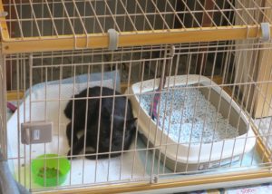 アイが引っ越してからですが、4月24日に保護しました。夕方に獣医に連れて行くので、とりあえずケージに入れましたが、狭いところはイヤなようです。でも、30分ほどしたら落ち着いて、エサも食べました。