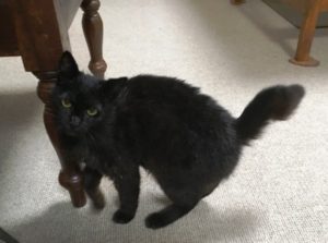 2019年3月、アイの里親候補さんが面会にいらっしゃった頃、ガレージの自転車カバー屋根の上に小柄な黒猫が昼寝していました。まだ生後6カ月くらいの野良猫です。