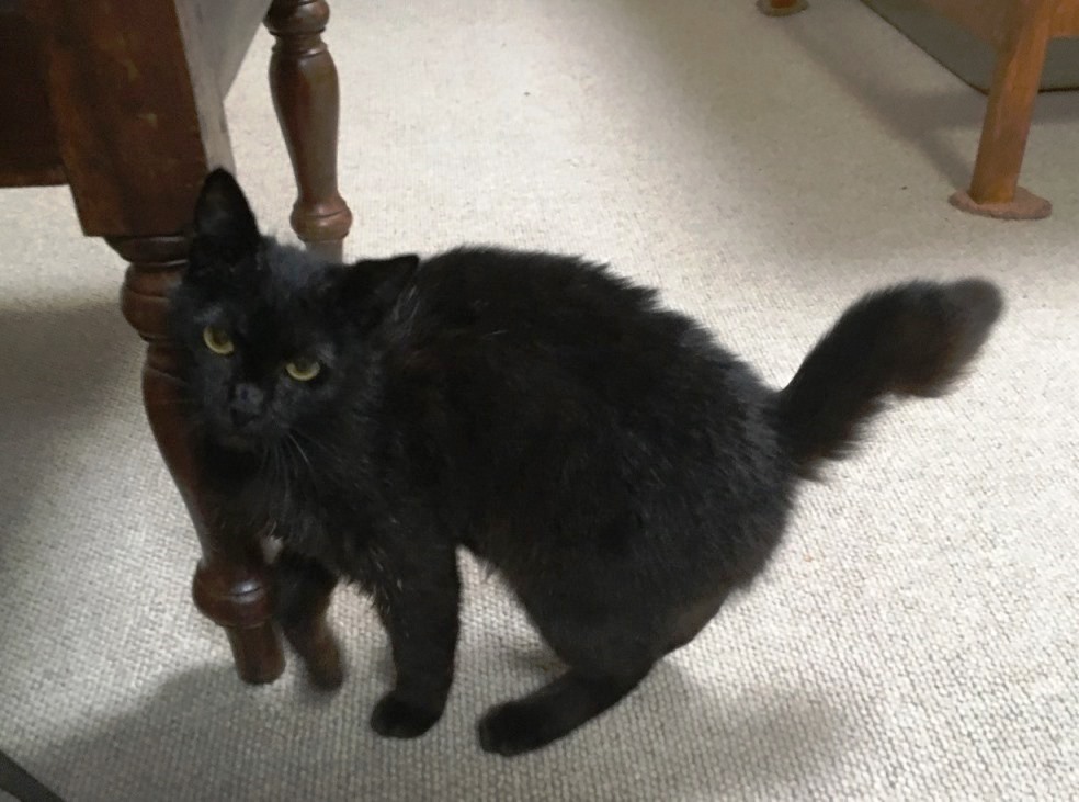 とっても人なつっこくて可愛いけれど、よく見ると、耳の後ろが皮膚病のようで、加えて、鼻汁が頻繁に出ていて、クシャミで鼻汁を飛ばしたりしています。風邪にかかっているようです。