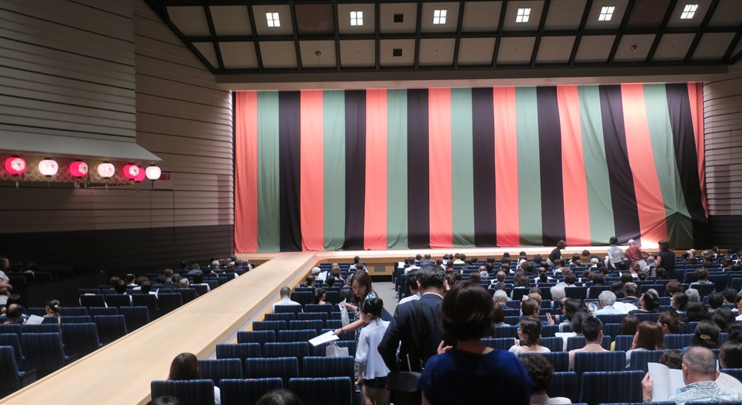 若手の発表会とはいえ、さすがに歌舞伎だと思ったのは、観客に花柳界っぽい人がちらほらと見えたことですね。いつもの文楽とは少し客層が違うようです。また、これも歌舞伎らしいのは、「なりこまや!」などの掛け声が入ることです。本来は「大向う」からのものでしょうが、前のほうの客席からも掛かっていました。文楽劇場は狭いので、仕方がないのかもしれません。