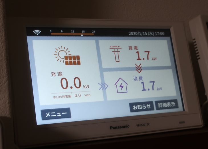 1月20日には経産省による発電所(再生可能エネルギー発電事業計画)の認定がなされました。双方向の電力メーターが取り付けられるまで、しばらく自立運転を試します。自立運転とは、電力会社からの系統電力を遮断して、太陽光発電による電力のみを利用するモードで、停電時の利用と言えます。