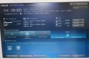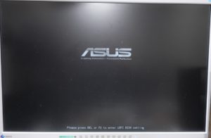 電源を入れると、最初にASUS(マザーボードのメーカー)のロゴ画面が出ます。